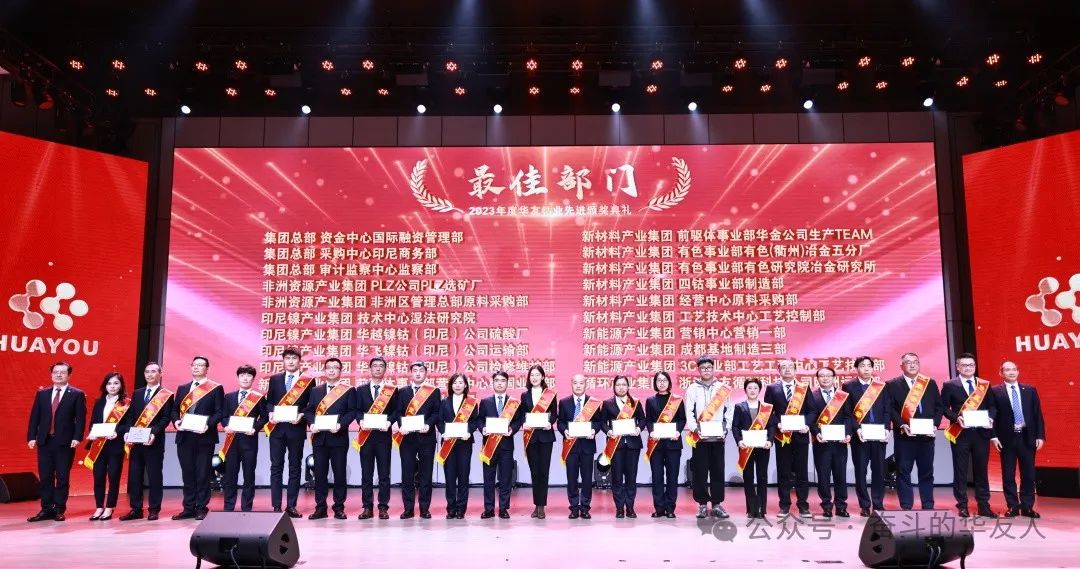 1月19日,以“夢想 奮進 榮耀”為主題的華友鈷業(yè)2023年度先進頒獎典禮在集團總部舉行。
