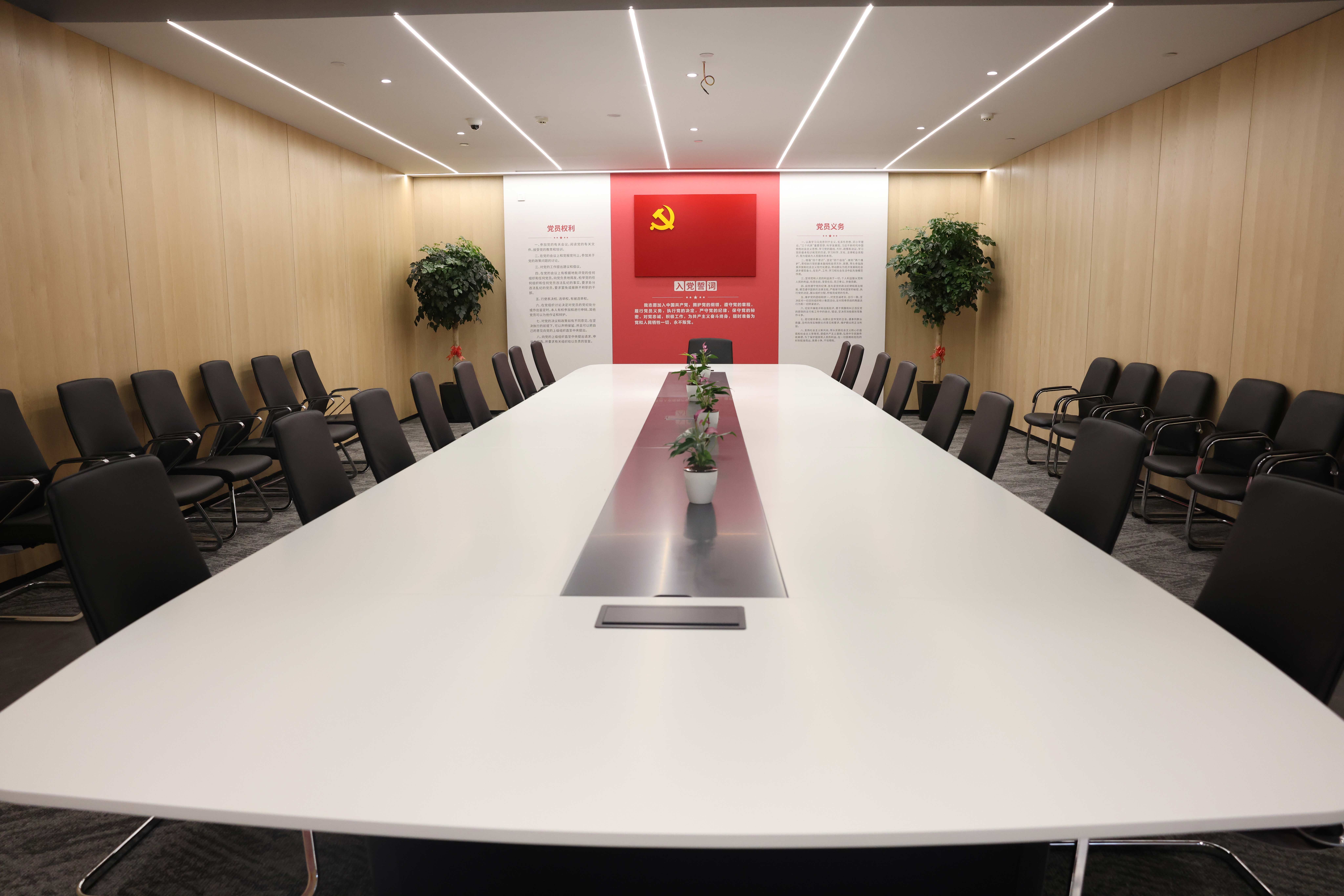 華友衢州產業園黨群服務中心形成“1+N”的功能布局,以黨群展示廳為主線,配有創業發展史展廳、職工書屋、紅色教育中心、新聞直播間、“兩代表一委員”工作室等區塊,是集教育宣傳、接待辦事、會議培訓、文化衛建等功能的開放式職工文化綜合性黨群服務陣地,實現紅色元素可觀可感,形成一道亮麗的“紅色風景線”。