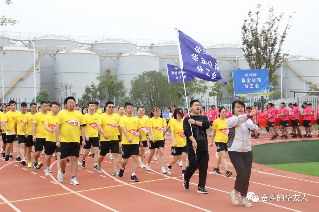 本次運動會共有三百多位員工參加,組成了9支隊伍。各隊伍參賽運動員們身著運動服,伴著激昂的《運動會進行曲》,邁著整齊穩健的步伐入場,帶來無限精彩的開幕式表演,展現華友人積極向上的精神風貌。