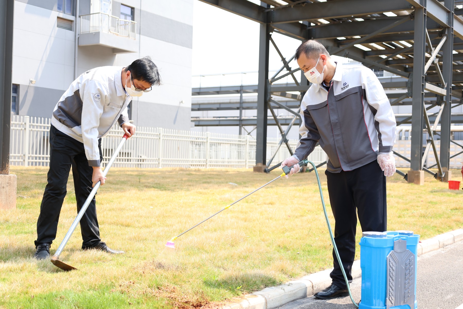 活動當天,陽光明媚,廣西基地全體黨員及各部門參加人員匯聚在廠區內,分為三個小組5大區域開展清潔、清理與消殺工作。