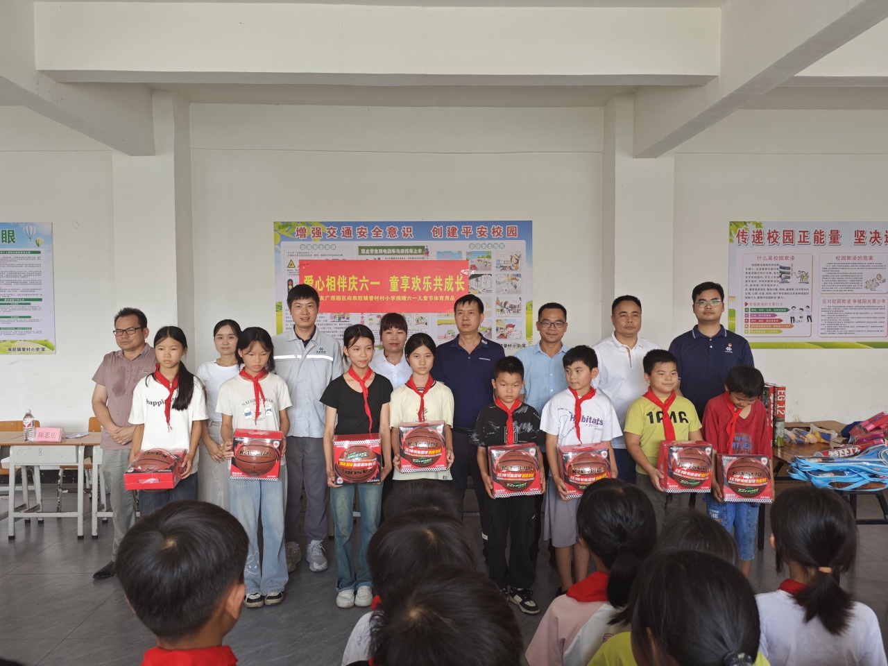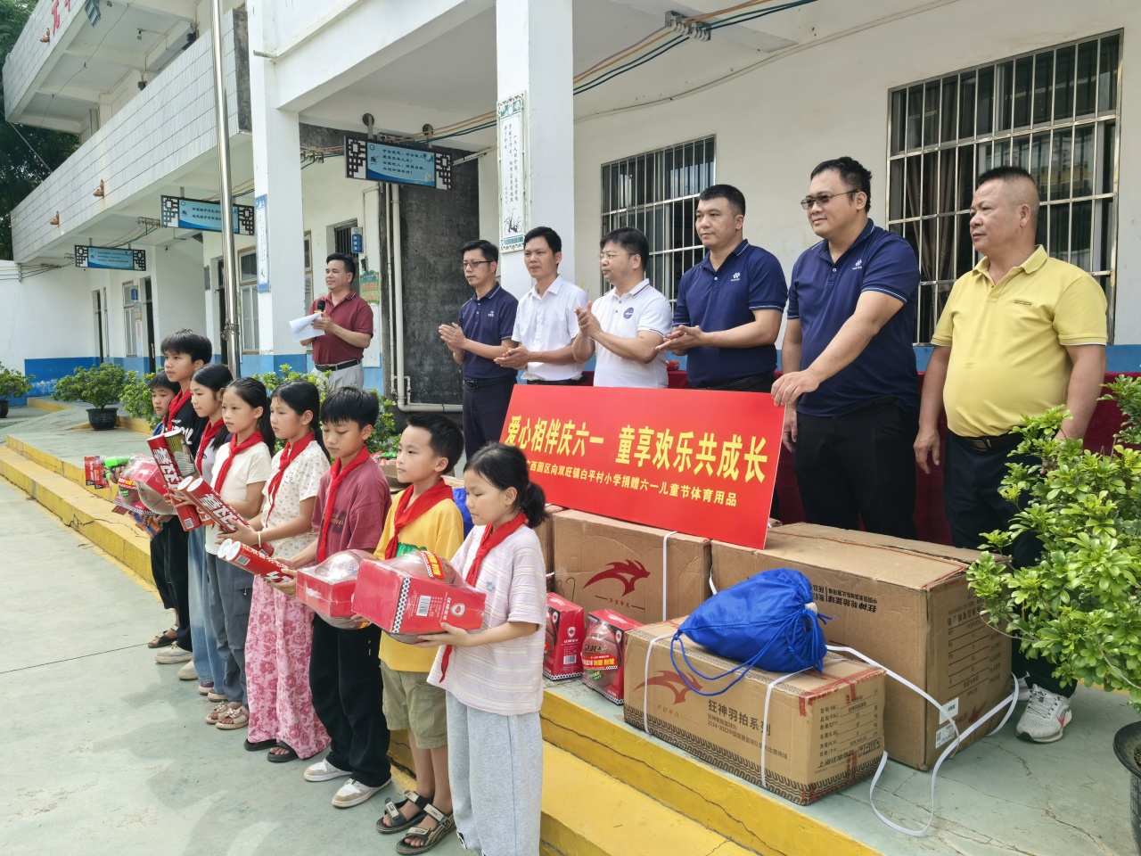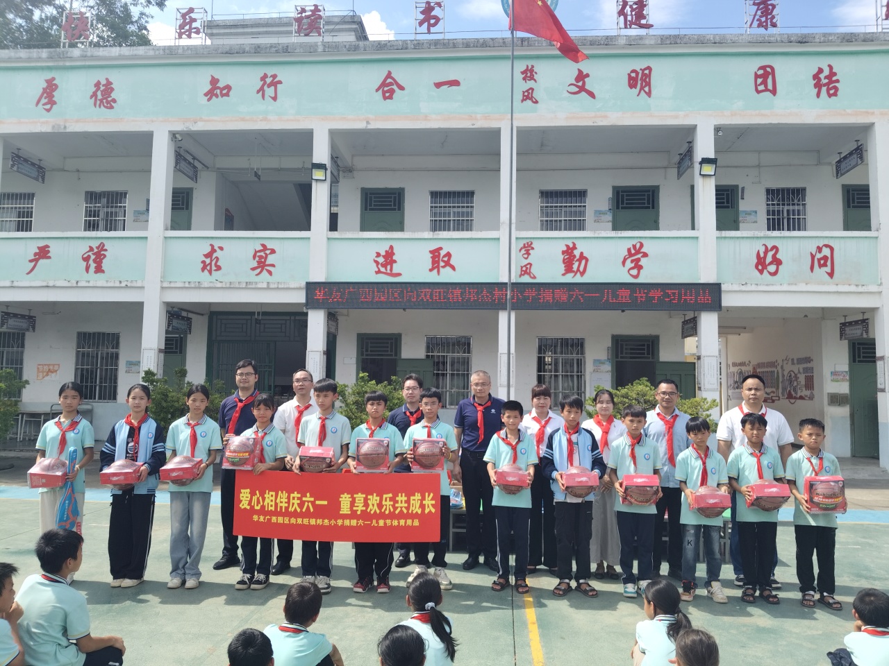 為深入踐行華友“不管在哪里投資,都要為當地社會做貢獻”的投資理念,持續助力鄉村教育發展,5月28日,在“六一”兒童節來臨之際,華友廣西區域管理中心及華友廣西園區各產業集團主要領導分別率隊,再次走進松旺鎮潭蓮村、雙旺鎮白平村、邦杰村、曾村及雙旺鎮中心小學等5所村級小學開展“愛心相伴慶六一 童享歡樂共成長”主題愛心捐贈活動,為3700余名學生送去籃球、羽毛球、跳繩等體育用品。這是華友廣西園區連續第三年向周邊鄉鎮學校進行定向公益支持,用實際行動傳遞企業溫暖。
