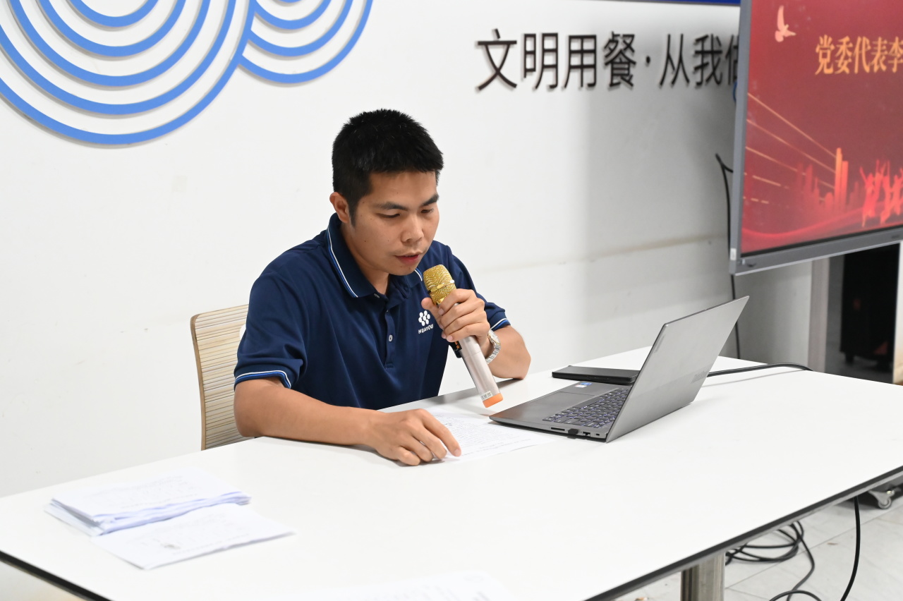 李勇代表華友廣西產(chǎn)業(yè)園黨委進(jìn)行講話,他深情回顧園區(qū)五載奮進(jìn)歷程,高度贊譽(yù)青年員工在企業(yè)發(fā)展中展現(xiàn)的擔(dān)當(dāng)作為。