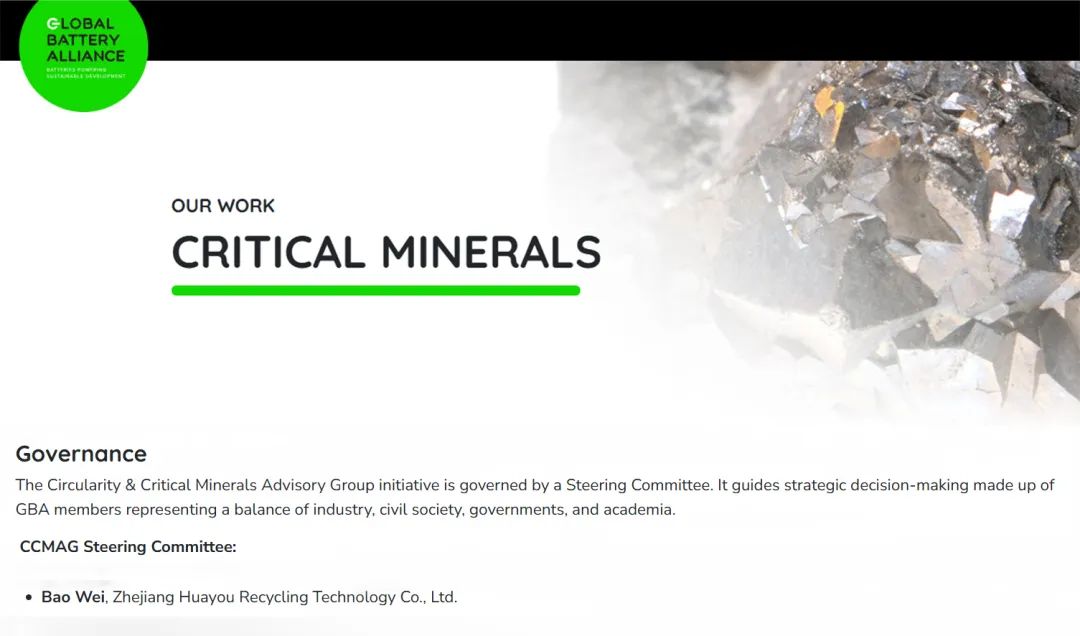 Recently, following a unanimous nomination and approval by the Global Battery Alliance (GBA) Board of Directors, Huayou Recycling was formally admitted to the Circularity & Critical Minerals Advisory Group (CCMAG)—a core working body of GBA. This milestone reaffirms Huayou Recycling’s internationally recognized leadership in driving sustainability across the global battery supply chain.