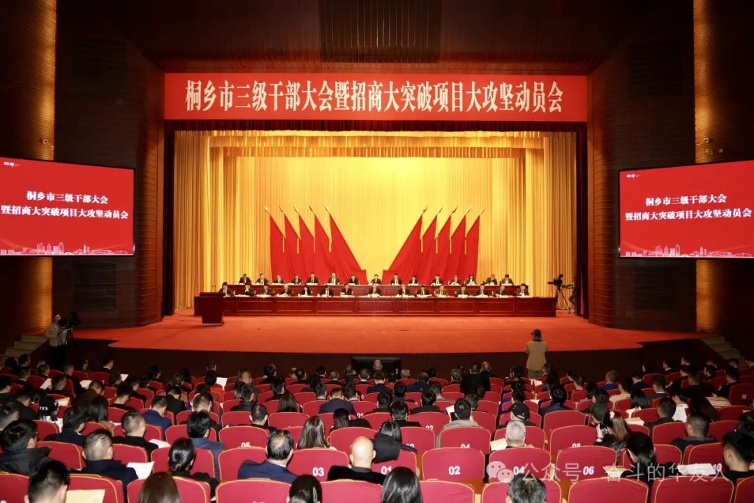 人勤春早功不負,奮斗實干啟新程。今天(2月17日),桐鄉市召開三級干部大會暨招商大突破項目大攻堅動員會,總結成績、表彰先進、樹立典型、提神鼓勁,動員全市上下擼起袖子加油干,重整行裝再出發,奮力書寫中國式現代化的桐鄉篇章,加快建設數字文明共富美好新桐鄉。中共桐鄉市委書記于會游,桐鄉市委副書記、市長王堅等四套班子領導出席大會。集團董事長陳雪華參加會議并于主席臺就座。