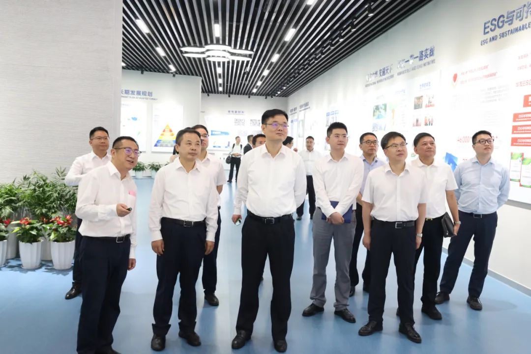 座談后,張?zhí)烊我恍邢群髤⒂^了華友展廳和華友新材料產(chǎn)業(yè)集團(tuán)前驅(qū)體研究院,進(jìn)一步了解了華友全球化發(fā)展歷程、產(chǎn)業(yè)布局和未來發(fā)展規(guī)劃等情況。在前驅(qū)體研究院,負(fù)責(zé)人向張?zhí)烊我恍薪榻B了華友前驅(qū)體研發(fā)團(tuán)隊(duì)建設(shè)、領(lǐng)先技術(shù)工藝以及在三元前驅(qū)體、鈉電前驅(qū)體的研發(fā)應(yīng)用成果,張?zhí)烊螌?duì)華友前驅(qū)體研究院的研發(fā)環(huán)境、設(shè)施設(shè)備及研發(fā)成果表示了熱烈稱贊,并對(duì)華友在鈉電前驅(qū)體領(lǐng)域的持續(xù)突破和取得的重大成果表示積極肯定。
