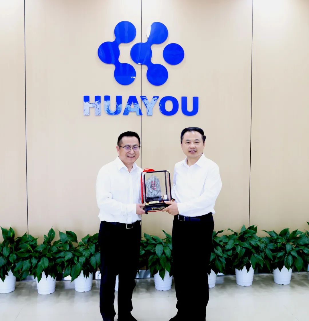 方圓代表陳雪華董事長,向張?zhí)烊味麻L贈(zèng)送了極具華友特色的紀(jì)念品——《友石同輝》。該紀(jì)念品礦石來自華友津巴布韋Arcadia鋰礦,上刻“根在中華 友遍天下”,體現(xiàn)了華友的家國情懷和商業(yè)理想,并在原石一側(cè)擺放了由華友鋰業(yè)(廣西)公司生產(chǎn)的碳酸鋰產(chǎn)品,體現(xiàn)了華友“資源在海外、制造在中國、市場(chǎng)在全球”的產(chǎn)業(yè)布局。張?zhí)烊勿堄信d趣地詢問了紀(jì)念品的設(shè)計(jì)理念,表示了誠摯感謝。
