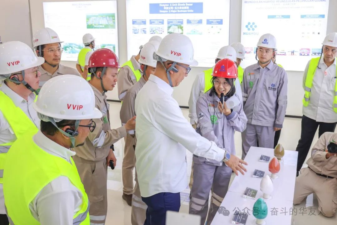 阿古斯·古米旺閣下先后參觀了華飛項(xiàng)目高壓酸浸車間、產(chǎn)品車間以及華能項(xiàng)目展廳、質(zhì)量檢測中心、主控中心和生產(chǎn)車間,聽取了關(guān)于項(xiàng)目概況以及工藝技術(shù)、生產(chǎn)規(guī)模、產(chǎn)能產(chǎn)量、ESG建設(shè)等情況介紹,對華友在印尼一系列項(xiàng)目的成功落地投產(chǎn)表示祝賀。