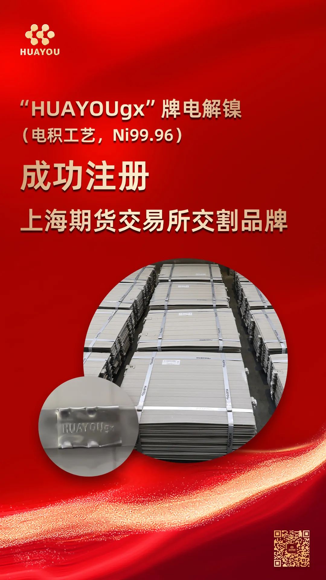 “HUAYOUgx”牌電解鎳,再次成功注冊(cè)!