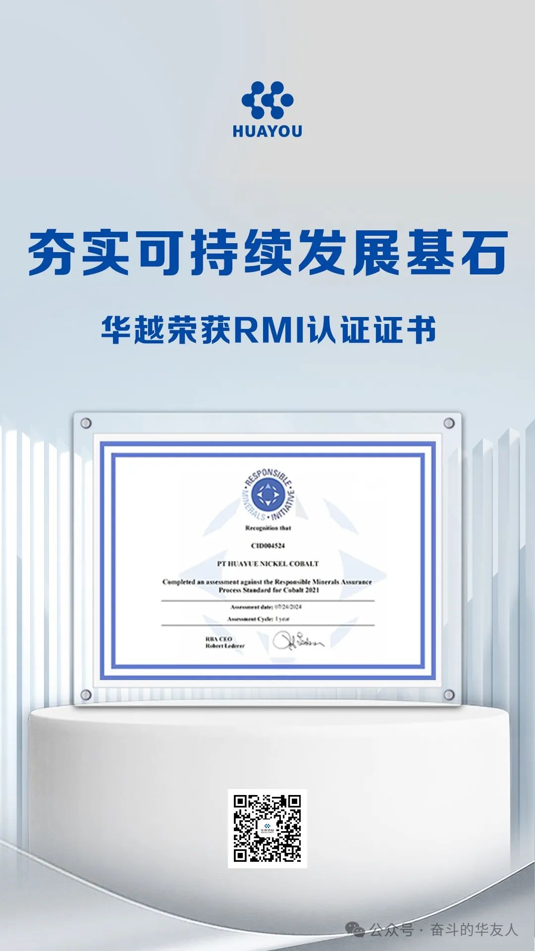 夯實可持續發展基石 | 華越公司獲負責任礦產倡議認證