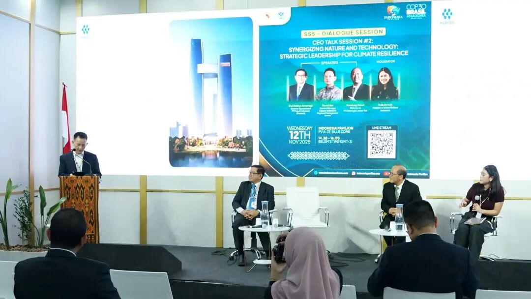 當地時間11月12日,COP30印尼館舉辦了主題為“協同自然與科技:氣候韌性戰略領導力”的CEO氣候對話(CEO Climate Talks)活動,華友印尼區域管理中心總經理韋林奎代表公司,與來自印尼PT Pupuk Indonesia和Astra Agro Lestari Tbk的嘉賓共同參與。