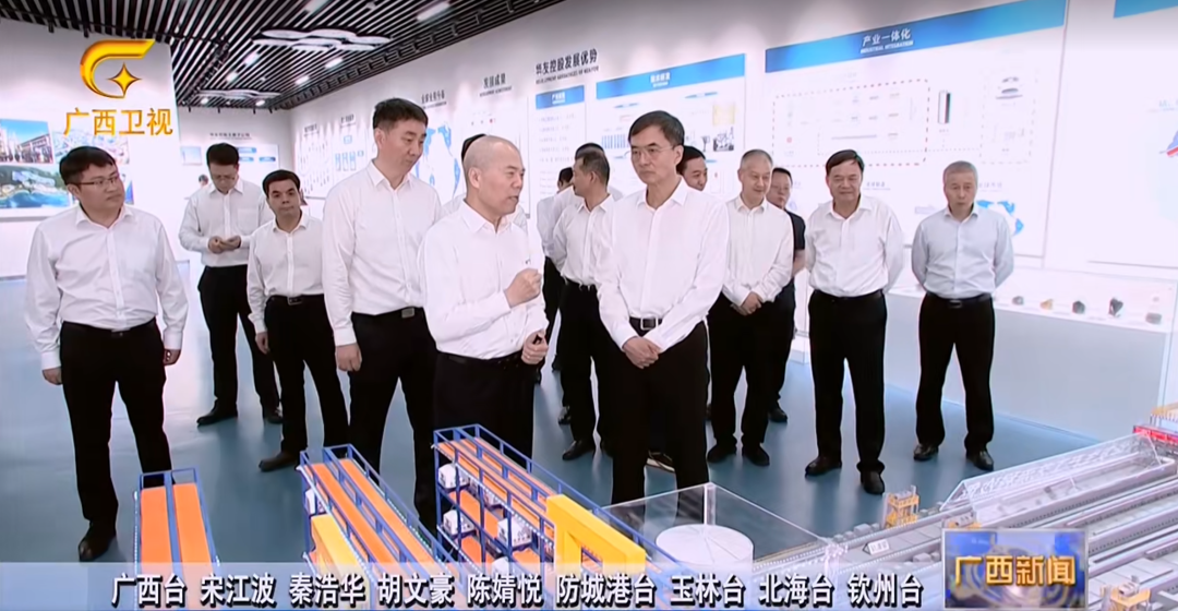 陳剛書記在企業(yè)展廳認真聽取匯報,詳細詢問項目建設、技術創(chuàng)新、市場開拓及ESG等情況,對華友控股集團堅持高起點規(guī)劃、高標準建設、高效率推進產(chǎn)業(yè)基地的務實舉措給予高度評價。他指出,新能源材料是戰(zhàn)略性新興產(chǎn)業(yè),是培育發(fā)展新質(zhì)生產(chǎn)力的關鍵領域。華友控股集團作為行業(yè)龍頭企業(yè),綜合實力雄厚、發(fā)展理念先進,在新能源新材料領域成果豐碩,產(chǎn)業(yè)布局與廣西現(xiàn)代化產(chǎn)業(yè)體系建設高度契合。華友廣西園區(qū)既是廣西發(fā)展向海經(jīng)濟、培育壯大新能源新材料產(chǎn)業(yè)的龍頭支柱項目,也是廣西服務和融入國內(nèi)國際雙循環(huán)、深度開拓東盟市場的重要支點,精準呼應廣西“聚焦國家所需、廣西所能”的發(fā)展定位。