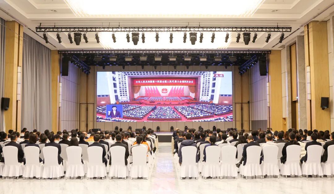 3月5日上午9時,十四屆全國人大四次會議開幕會在北京人民大會堂舉行。華友鈷業董事長陳雪華作為全國人大代表,現場聆聽政府工作報告。公司組織員工集中收看開幕式直播盛況,聽取報告,學習領會精神,汲取奮進力量。