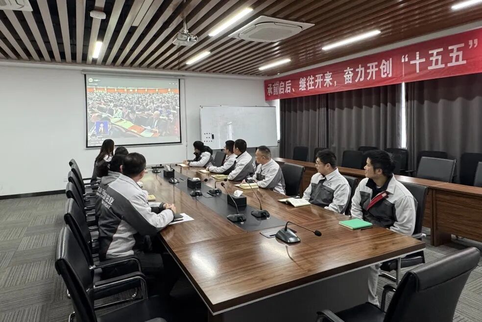 收看過程中,員工們全神貫注,現場不時響起熱烈的掌聲。大家紛紛表示,通過觀看大會開幕會,對國家的發展戰略和未來規劃有了更清晰的認識,并將以更加堅定的信心、更加飽滿的熱情,以實際行動助推公司高質量發展。接下來,公司上下將緊跟兩會進程,及時掌握最新信息和權威解讀,以習近平新時代中國特色社會主義思想為指引,以李強總理所作的政府工作報告為行動指南,以“科技華友、綠色華友、開放華友、責任華友、奮進華友”為戰略舉措,穩中求進、進中求勝,努力開拓“十五五”高質量發展新境界。